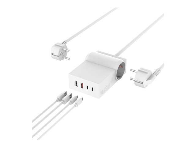 4smarts - Effektband - desk, GaN, 65W - AC 100-240 V - ingång: Typ F/E - utgångskontakter: 2 (2 x USB, 2 x USB-C, 2 x power Type F/E) - 1.5 m sladd - vit
