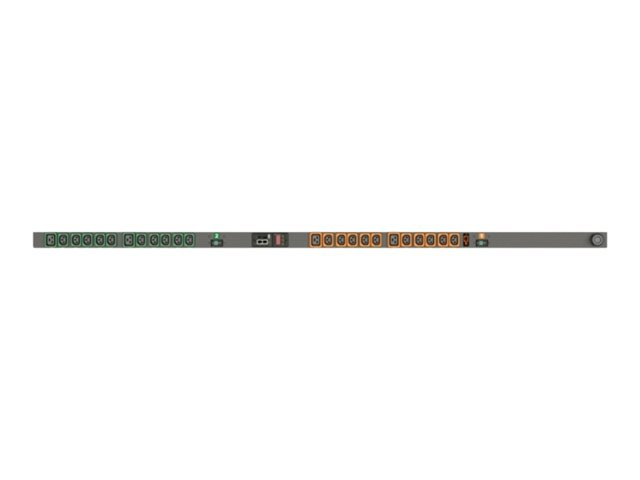 | Produktbeskrivning | Geist Switched Outlet Level Monitoring EC MGU3EGB1-24PJ43-3PS6B2A10-S - Kraftdistributionsenhet (kan monteras i rack) - AC 200-240 V - 7.3 kW - Ethernet 10/100 - ingång: IEC 60309 2P+E - utgångskontakter: 24 (4 x IEC 60320 C19, 20 x IEC 60320 C13) - 0U - 3 m sladd - svart pulverlack |