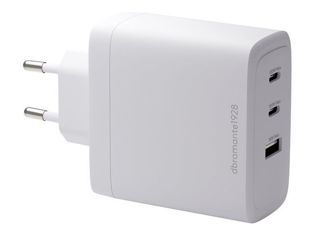 dbramante1928 re-charge - Strömadapter - 100 Watt - 3 utdatakontakter (2 x USB-C, USB) - vit