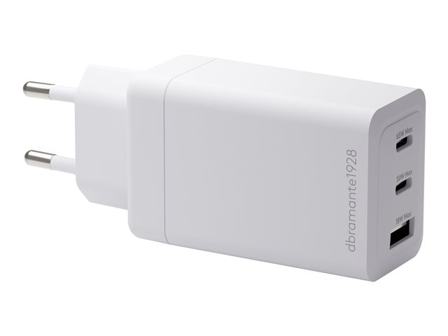dbramante1928 re-charge - Strömadapter - 65 Watt - 3 utdatakontakter (2 x USB-C, USB) - vit