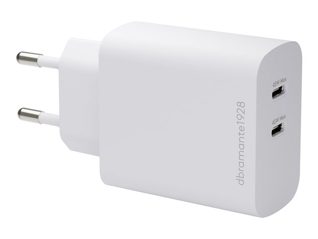 | Produktbeskrivning | dbramante1928 re-charge - Strömadapter - 45 Watt - Apple 2.4A, PD/PPS, PD 2.0, PD 3.0, QC 2.0, QC 3.0, AFC, SCP, Fast Charge - 2 utdatakontakter (24 pin USB-C) - vit - Europa |