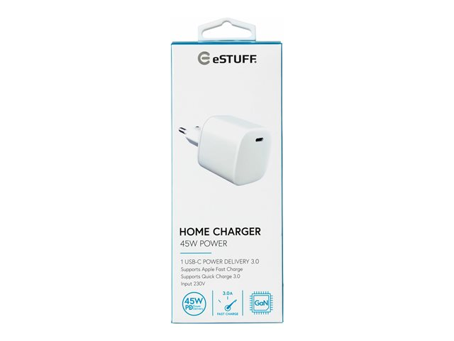 eSTUFF - Strömadapter - 45 Watt - PD 3.0, QC 3.0, QC 2.0 (24 pin USB-C) - vit