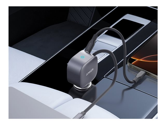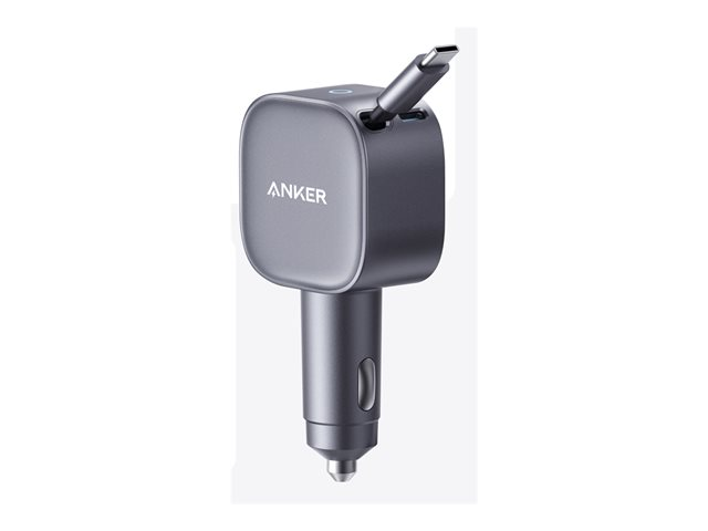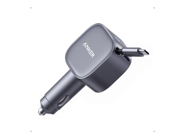 Anker - Strömadapter för bil - ultra-kompakt, inbyggd utdragbar kabel - 75 Watt - Fast Charge - 2 utdatakontakter (USB-C)