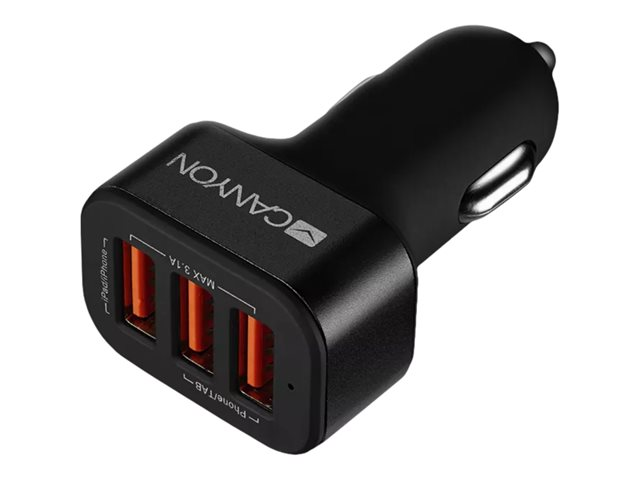 Canyon C-06 - Strömadapter för bil - 3.1 A - 3 utdatakontakter (USB) - svart