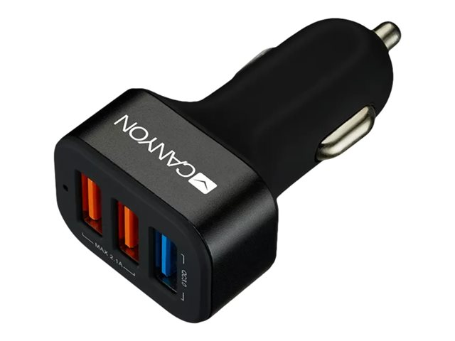 Canyon C-07 - Strömadapter för bil - 2.4 A - QC 3.0 - 3 utdatakontakter (USB) - svart