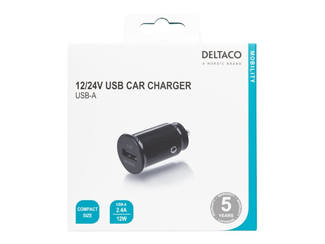 DELTACO USB-CAR123 - Strömadapter för bil - 12 Watt - 2.4 A (USB) - svart