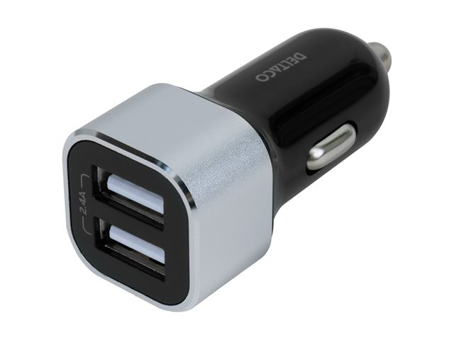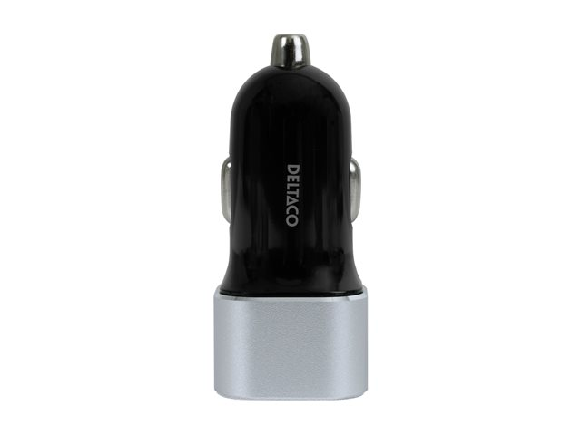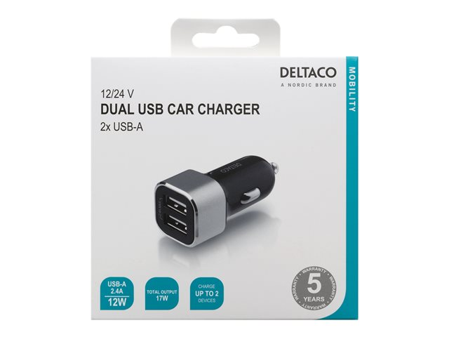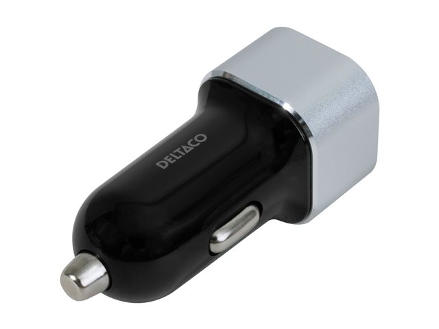 DELTACO USB-CAR126 - Strömadapter för bil - 17 Watt - 2.4 A - 2 utdatakontakter (2 x USB) - svart/silver