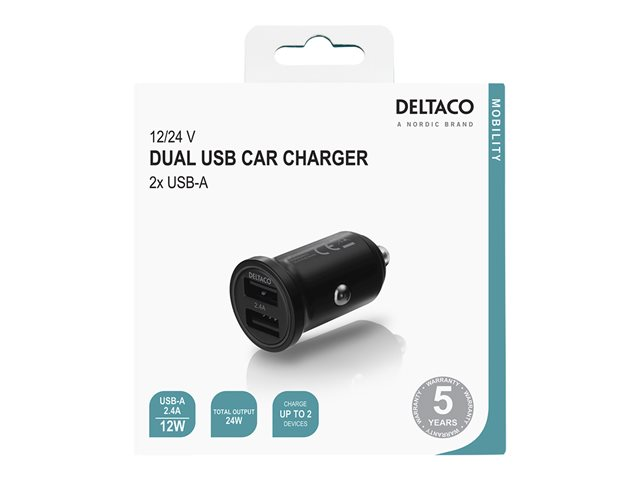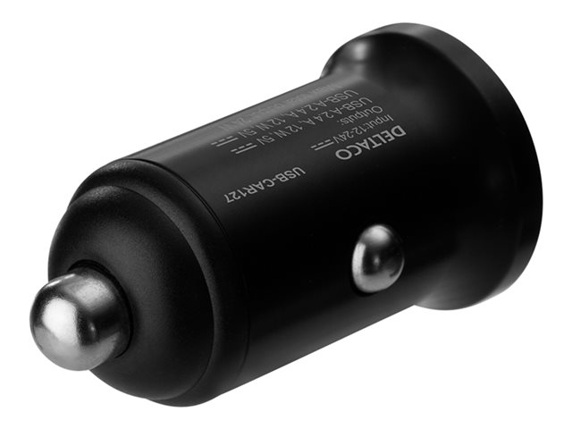 DELTACO USB-CAR127 - Strömadapter för bil - 24 Watt - 2.4 A - 2 utdatakontakter (USB) - svart