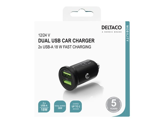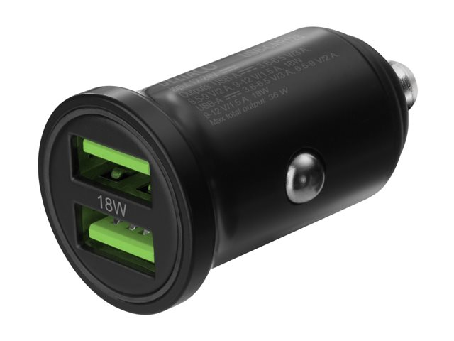 DELTACO USB-CAR128 - Strömadapter för bil - 36 Watt - 3 A - 2 utdatakontakter (USB) - svart