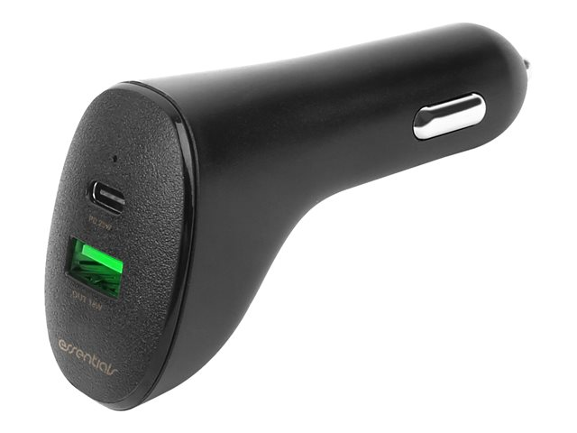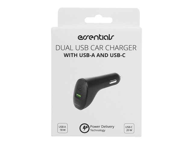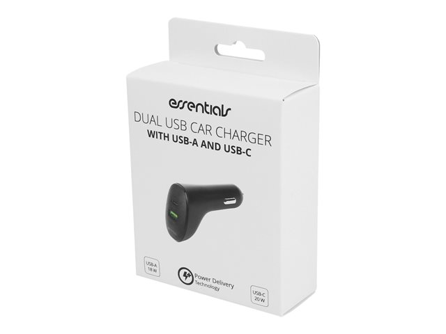 Essentials - Strömadapter för bil - PD - 2 utdatakontakter (USB, 24 pin USB-C) - svart