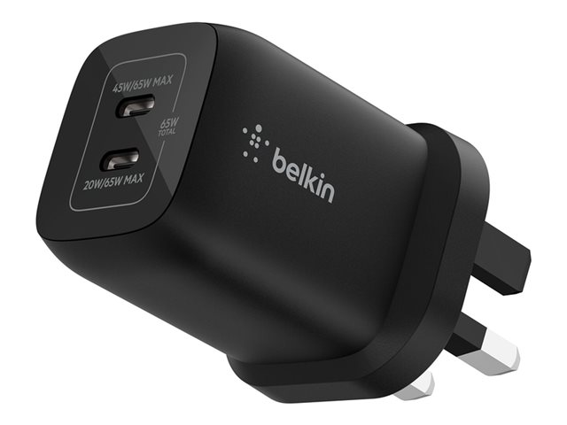 Produktbeskrivning | Belkin Gaming - Strömadapter - 65 Watt - Strömmatning 3.1 - 2 utdatakontakter (24 pin USB-C) - svart |