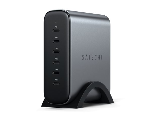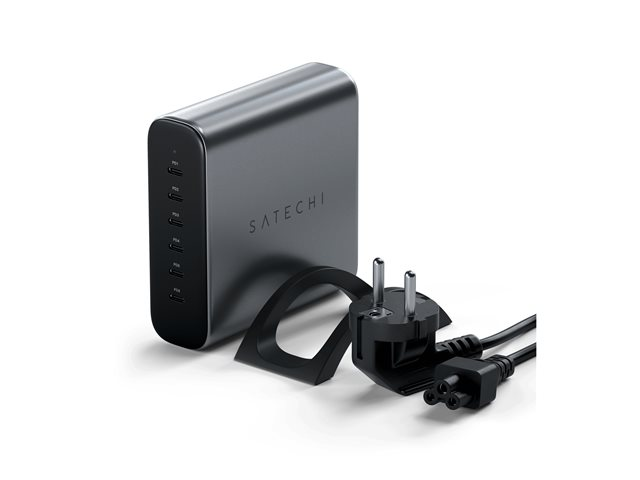 Produktbeskrivning | Satechi - Strömadapter - 200 Watt - Power Delivery 3.0 + PPS, PD 3.1/PPS, QC 4.0+ - 6 utdatakontakter (24 pin USB-C) - Europa |