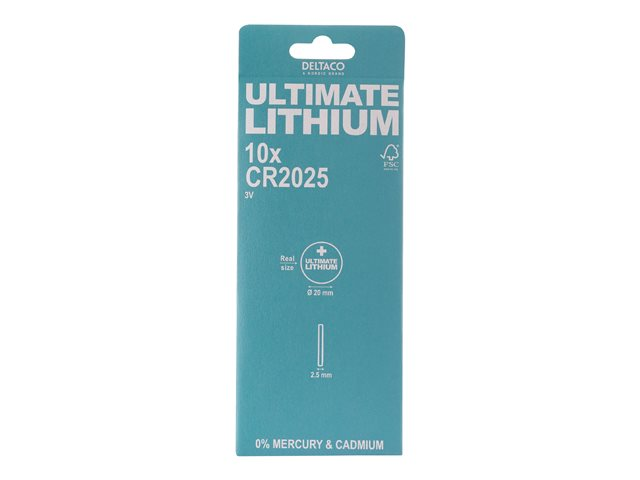 DELTACO Ultimate - Batteri 10 x CR2025 - Li (paket om 10)