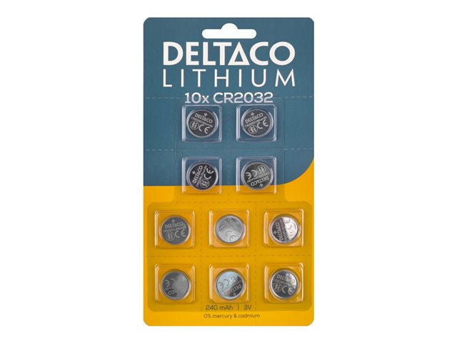 DELTACO - Batteri 10 x CR2032 - Li - 240 mAh