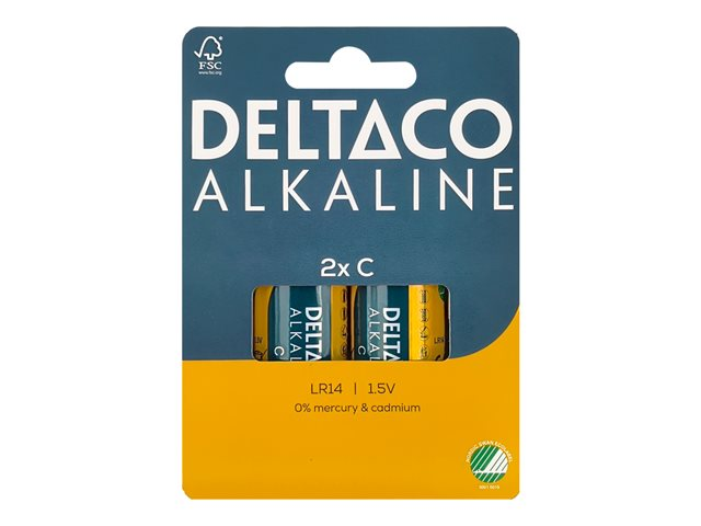 DELTACO - Batteri 2 x LR14-/C-typ - alkaliskt - 8400 mAh