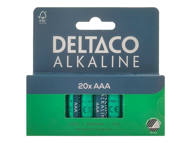 DELTACO - Batteri 20 x AAA / LR03 - alkaliskt - 1300 mAh