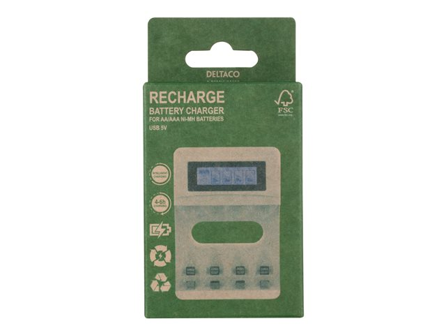 DELTACO - 4-6 tim. batteriladdare - (för 4xAA/AAA) - vit