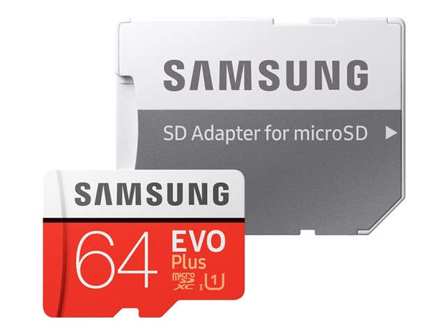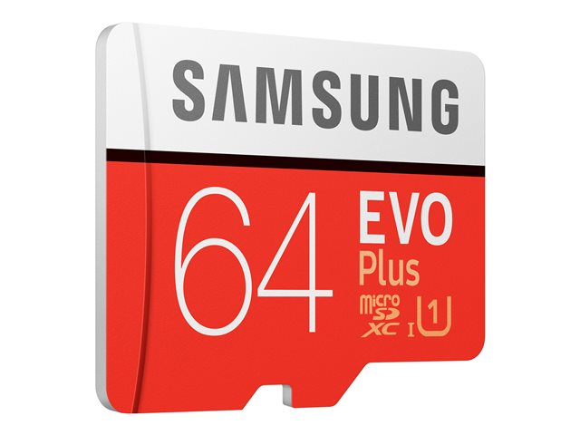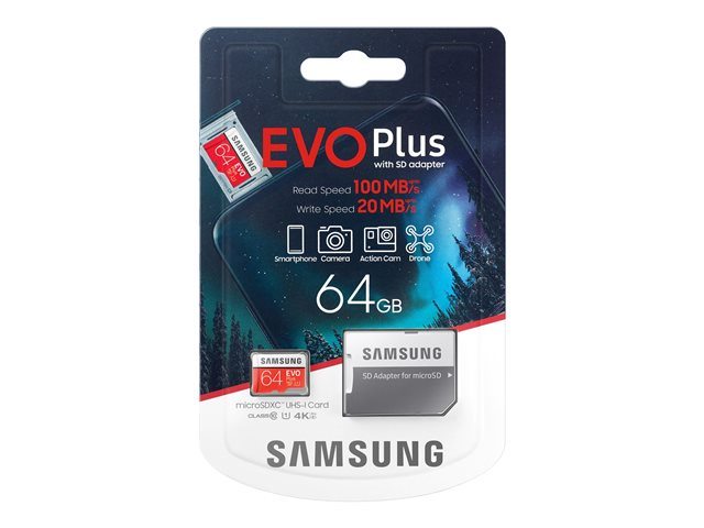 Samsung EVO Plus MB-MC64HA - Flash-minneskort (microSDXC till SD-adapter inkluderad) - 64 GB - UHS-I U3 / Class10 - mikroSDXC UHS-I