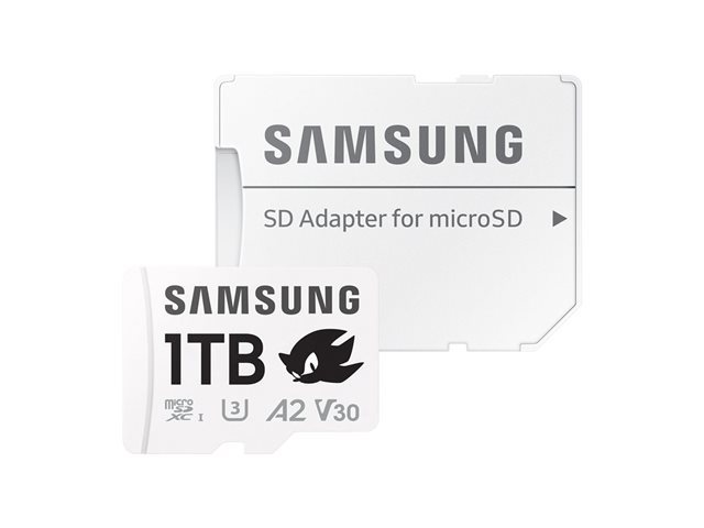 Samsung PRO Plus MB-MD1T0SA - Sonic the Hedgehog flash-minneskort (microSDXC till SD-adapter inkluderad) - 1 TB - A2 / Video Class V30 / UHS-I U3 - mikroSDXC UHS-I - vit