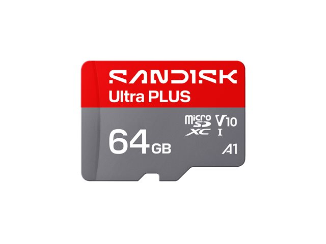 SanDisk Ultra PLUS - Flash-minneskort - 64 GB - A1 / Video Class V10 / UHS-I U1 / Class10 - mikroSDXC UHS-I