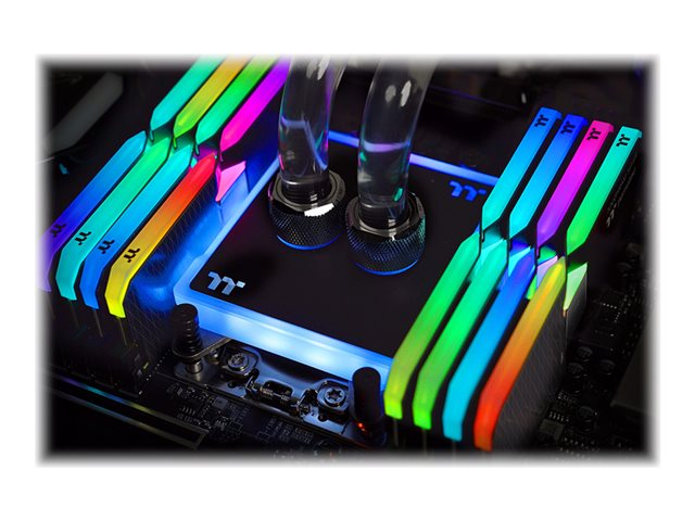 | Egenskaper | Värmespridare av aluminium, Intel Extreme Memory Profiles (XMP 2.0), 10 lager PCB med 56,7 g koppar, stöd för ASUS Aura Sync, RGB-färgade LED-lampor, stöd för MSI Mystic Light RGB, ASRock-polykromstöd, stöd för Gigabyte RGB Fusion 2.0, TT RGB PLUS-stöd, TT AI-röststyrningsstöd, Amazon Alexa-stöd, Razer Chroma-belysningsstöd, stöd för RGB-synkroniseringssystem, noggrant skärmade integrerade kretsar (IC), 16 hög-lumen adresserbara LED-lampor, X-formad ljusbar design, NeonMaker Ljusredigeringsstöd, Thermaltake ARTT App stöd, ej buffrad |