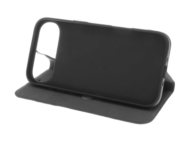 Produktbeskrivning | Insmat Easy - Vikbart fodral för mobiltelefon - polyuretan, kartong+papper, innerfodral av termoplastisk polyuretan (TPU), eco-läder - svart - för Apple iPhone Air |