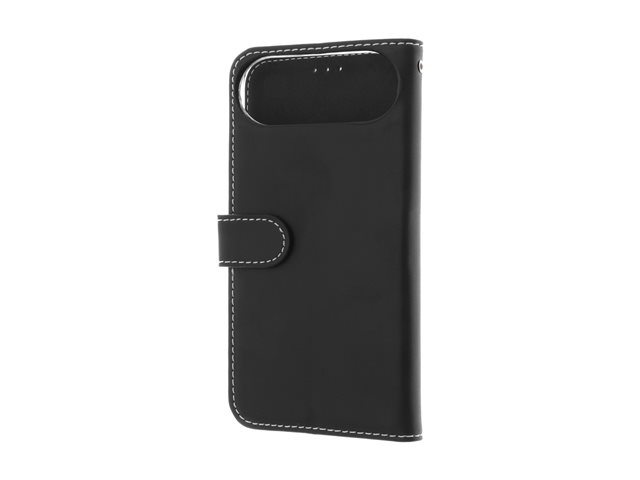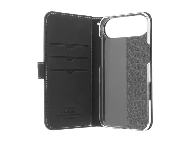 | Produktbeskrivning | Insmat Exclusive - Vikbart fodral för mobiltelefon - genuint läder, kartong+papper+aluminiumfolie, polykarbonat (PC) hållare, bomullssömmar - svart - för Apple iPhone Air |