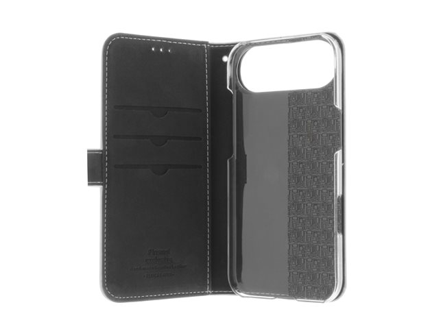 | Produktbeskrivning | Insmat Exclusive - Vikbart fodral för mobiltelefon - genuint läder, kartong+papper+aluminiumfolie, polykarbonat (PC) hållare, bomullssömmar - vit - för Apple iPhone Air |
