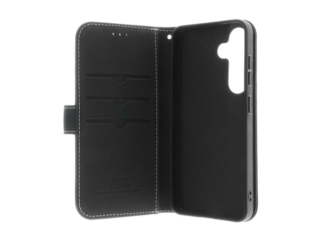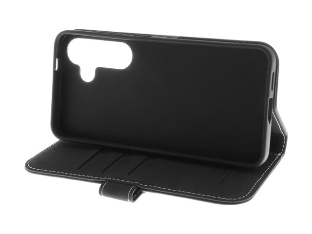 | Produktbeskrivning | Insmat Exclusive - Vikbart fodral för mobiltelefon - läder, termoplastisk polyuretan (TPU), bomullssömmar, galvaniserad bronsring - svart - för Samsung Galaxy S26+ |