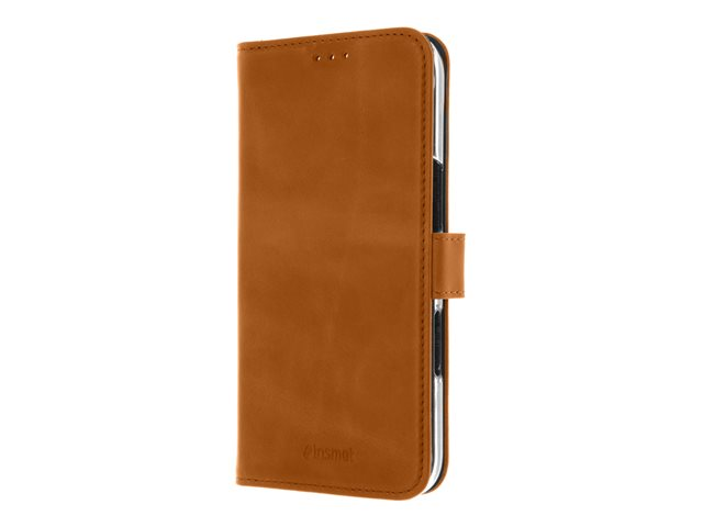 | Produktbeskrivning | Insmat Premium - Vikbart fodral för mobiltelefon - genuint läder, kartong+papper, polykarbonathållare, galvaniserad bronsring, vadderad bomull - brun - för Apple iPhone Air |