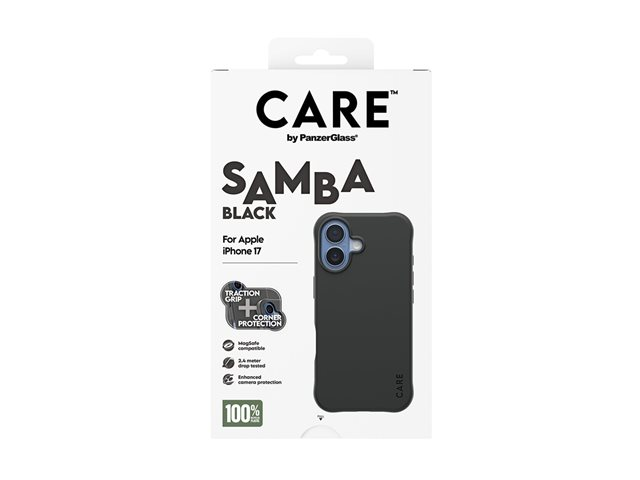 CARE by PanzerGlass Samba - Baksidesskydd för mobiltelefon - MagSafe-kompatibilitet - termoplastisk polyuretan (TPU) - svart - för Apple iPhone 17