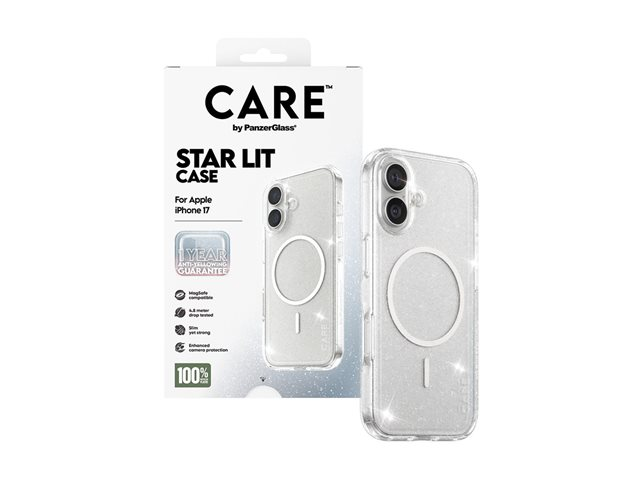 CARE by PanzerGlass Star Lit - Baksidesskydd för mobiltelefon - MagSafe-kompatibilitet - vit, klar - för Apple iPhone 17