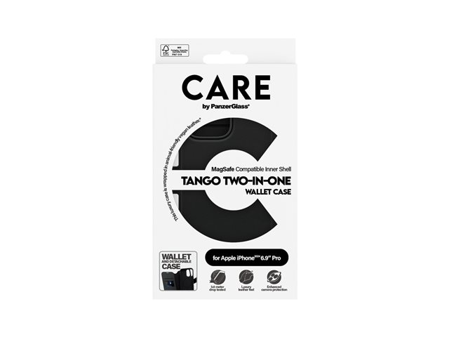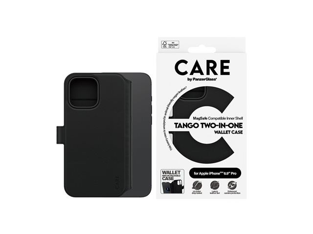 | Produktbeskrivning | CARE by PanzerGlass Tango - Vikbart fodral för mobiltelefon - två-i-ett - MagSafe-kompatibilitet - polykarbonat, polyuretanläder |