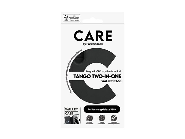 | Produktbeskrivning | CARE by PanzerGlass Tango - Vikbart fodral för mobiltelefon - två-i-ett - 100 % återvunnet polykarbonat, 35 % återvunnen polyuretan (PU), konstläder - för Samsung Galaxy S25+ |