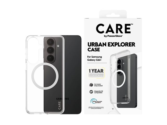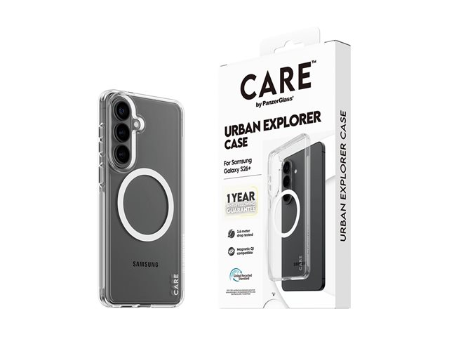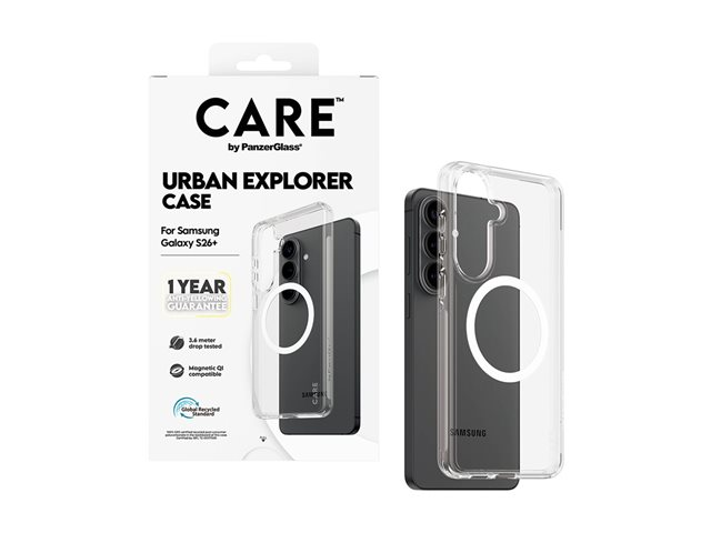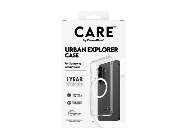 CARE by PanzerGlass Urban Explorer - Baksidesskydd för mobiltelefon - Qi - polykarbonat, polyuretan - transparent med vit - för Samsung Galaxy S26+