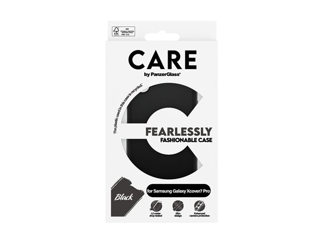 | Produktbeskrivning | CARE by PanzerGlass - Baksidesskydd för mobiltelefon - termoplastisk polyuretan (TPU) - svart - för Samsung Galaxy XCover7 Pro |