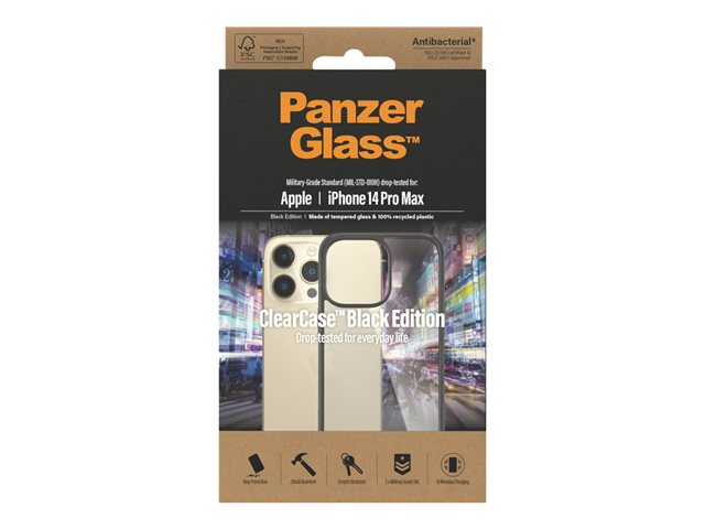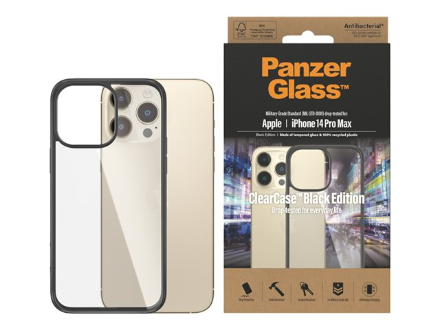 PanzerGlass HardCase - Black Edition - baksidesskydd för mobiltelefon - härdat glas, 100 % återvunnen plast - svart, transparent - för Apple iPhone 14 Pro Max