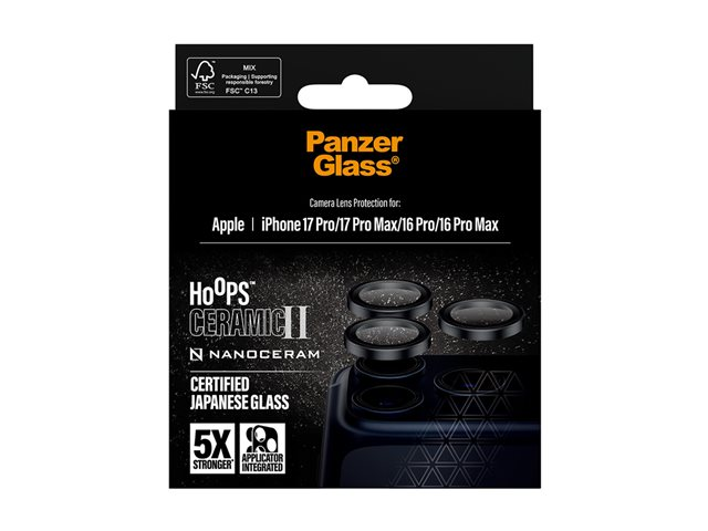 Produktbeskrivning | PanzerGlass Hoops Ceramic II - Linsskydd för mobiltelefon - svart - för Apple iPhone 16 Pro, 16 Pro Max, 17 Pro, 17 Pro Max |