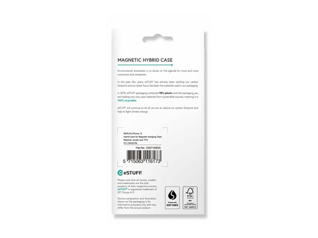 eSTUFF Berlin - Baksidesskydd för mobiltelefon - magnetisk - MagSafe-kompatibilitet - termoplastisk polyuretan (TPU), polykarbonat - klar - för Apple iPhone 15