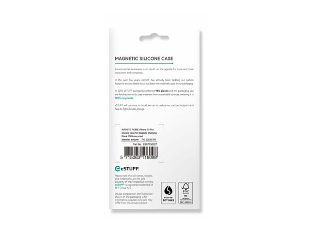 eSTUFF Infinite Rome - Baksidesskydd för mobiltelefon - magnetisk - MagSafe-kompatibilitet - polykarbonat, silikon - svart - för Apple iPhone 15 Pro