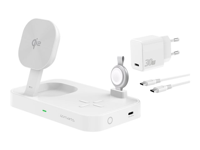 | Produktbeskrivning | 4smarts Trident - Trådlöst laddställ - Qi2 + växelströmsadapter - 25 Watt - 1 A (24 pin USB-C) - vit |