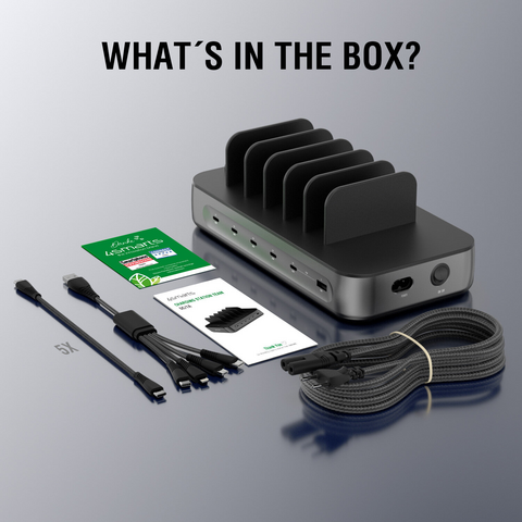 Charging station Team 100W, 1x USB-A,5x USB-C incl. 6 cables