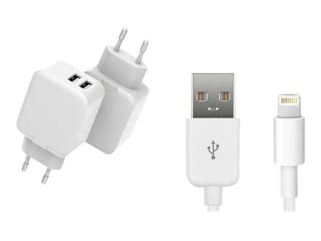 CoreParts - Strömadapter - 12 Watt - 2.4 A - 2 utdatakontakter (USB) - på kabel: Lightning - vit - med Lightning to USB cable (2m)