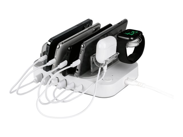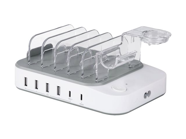 DELTACO DPS-0203 - Laddningsstation - 50 Watt - PD - 6 utdatakontakter (4 x USB, 2 x USB-C) - vit