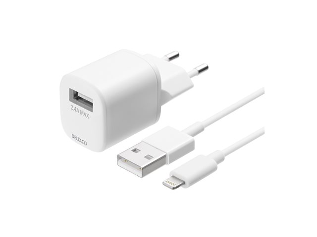 DELTACO USB-AC181 - Strömadapter - 12 Watt - 2.4 A (USB) - vit