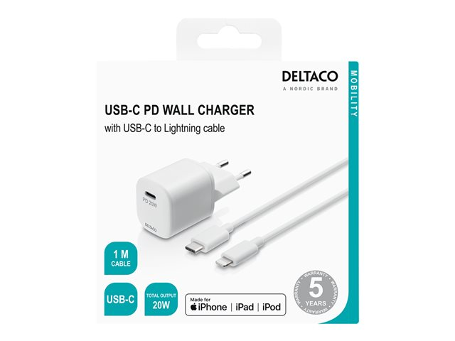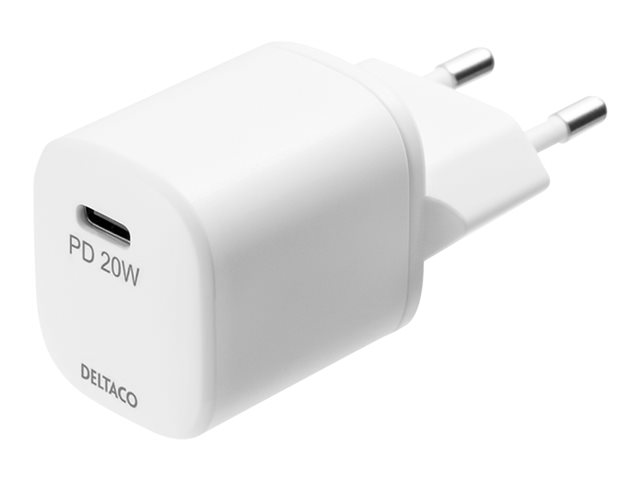 DELTACO USBC-AC141 - Strömadapter - 20 Watt - 3 A - PD (24 pin USB-C) - vit