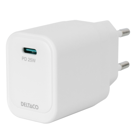 DELTACO Wall Charger - Strömadapter - 25 Watt - PD/PPS (24 pin USB-C) - vit