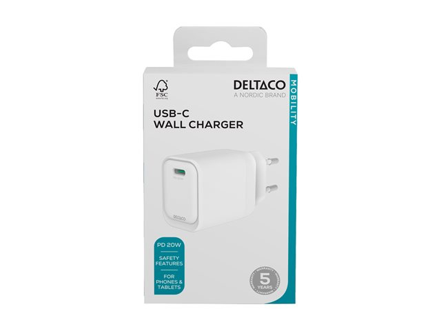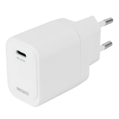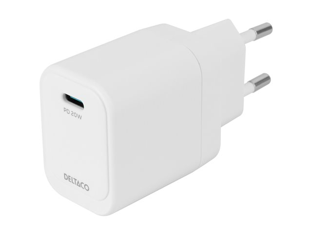 DELTACO - Strömadapter - 20 Watt - 3 A - PD/PPS (24 pin USB-C) - vit