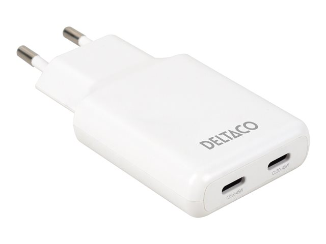| Produktbeskrivning | DELTACO - Strömadapter - smal - 45 Watt - 3 A - PD/PPS, SFC - 2 utdatakontakter (2 x USB-C) - vit |