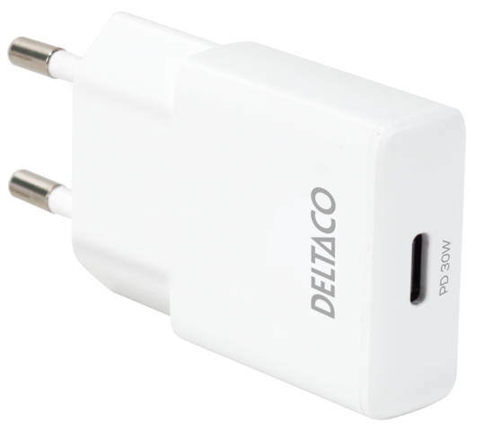 USB-C wall charger, 1x USB-C PD 30 W, slim, PPS, white